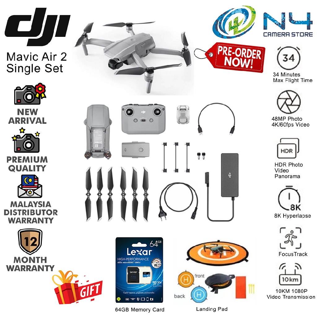 Mavic Air 2 Single Mavic Air 2 Fly More Combo Drone With Hd Camera 128gb M Card Landing Pad Original Dji Wty Shopee Singapore