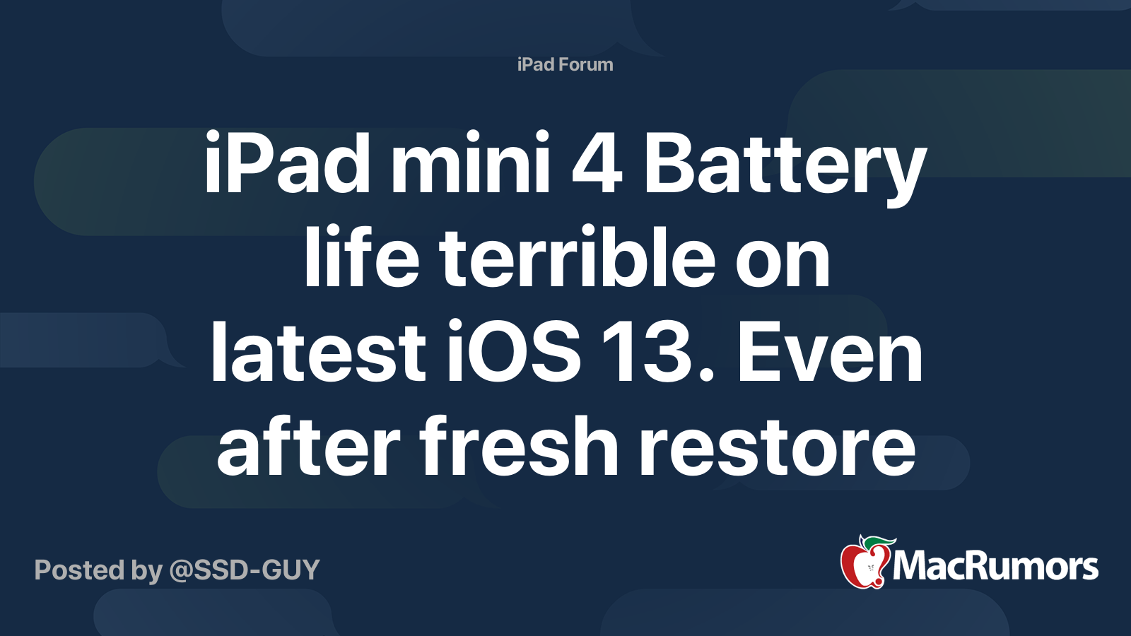 Ipad Mini 4 Battery Life Terrible On Latest Ios 13 Even After Fresh Restore From New Macrumors Forums