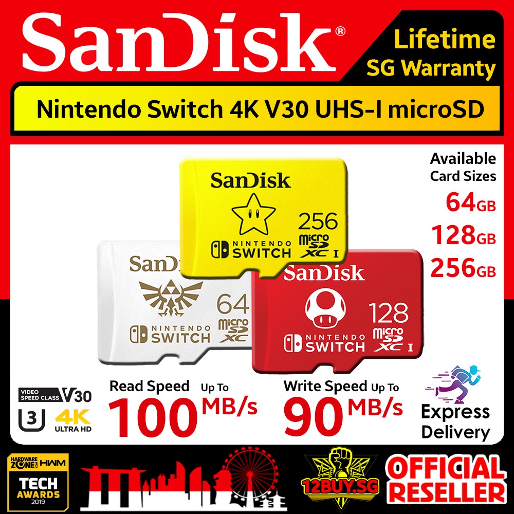 Sandisk Nintendo Switch Microsd Card 4k U3 V30 Uhs I C10 100mb S Read Speed 90mb S Write Speed 64gb 128gb 256gb Qxat Qxao 3pm Sg 12buy Sg Lifetime Warranty Express Door Delivery 3 To 7 Days